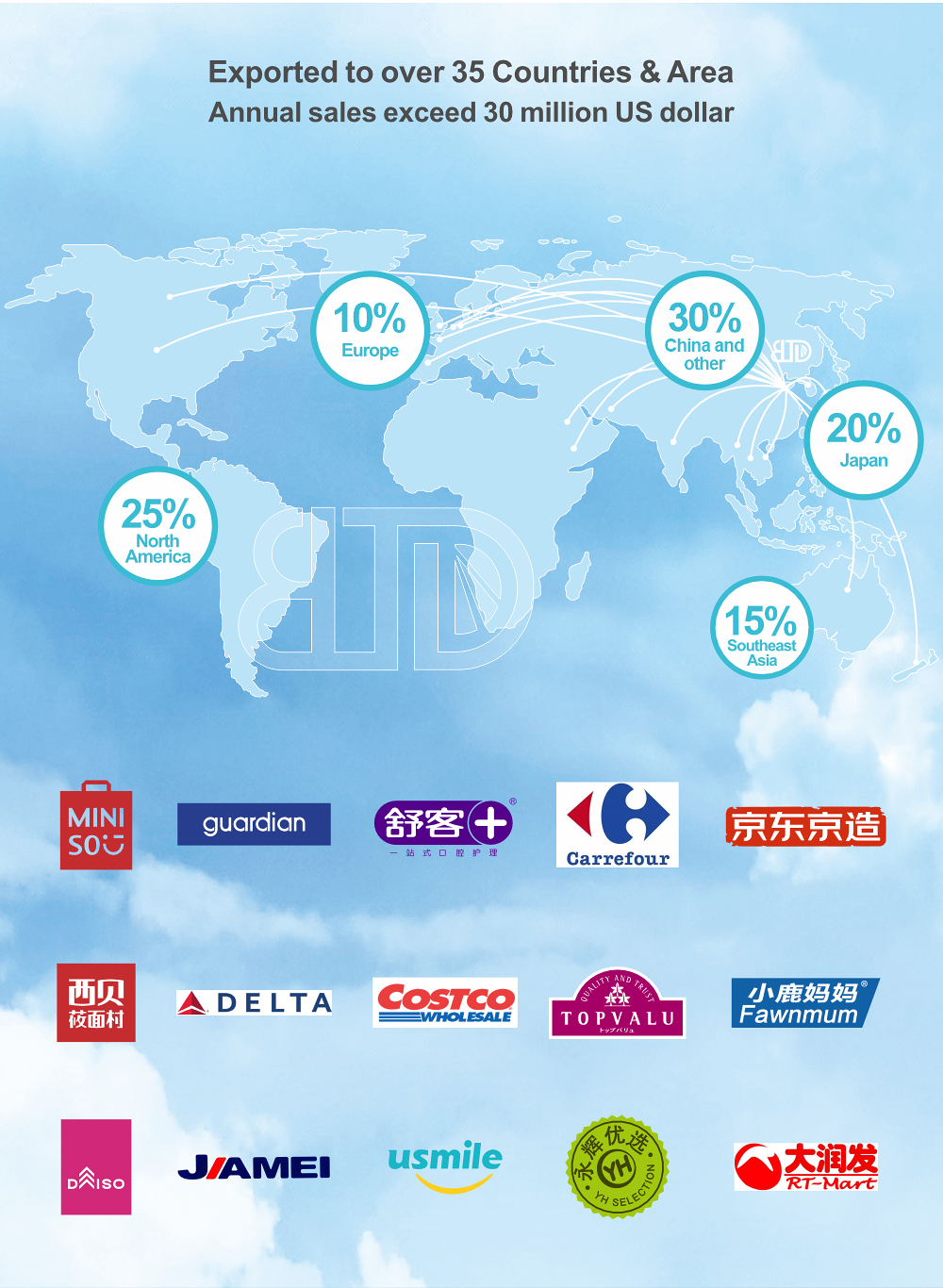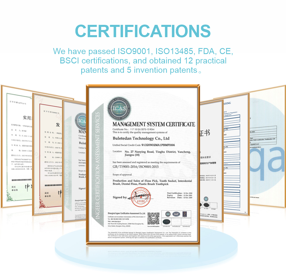 Buletedan Technology(Jiangsu)Co., Ltd., established in 2010, is located in Yancheng City, Jiangsu Province, covering an area of 47,000 square meters(9 work buildings) and employing over 500 people. The company's main business is to undertake ODM & OEM customization projects, The products mainly including: Dental floss Pick, Bamboo Floss Pick, Interdental brush, Toothpick brush, Tongue scraper, etc A number of products have been patented including 12 practical patents and 5 inventions patents, Capabilities of production, Research and Development are at the world leading level .